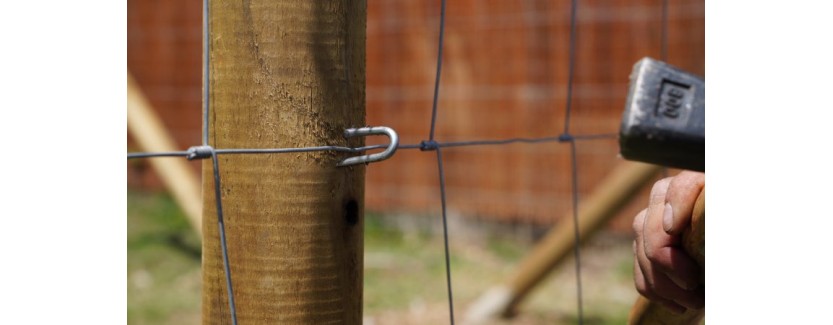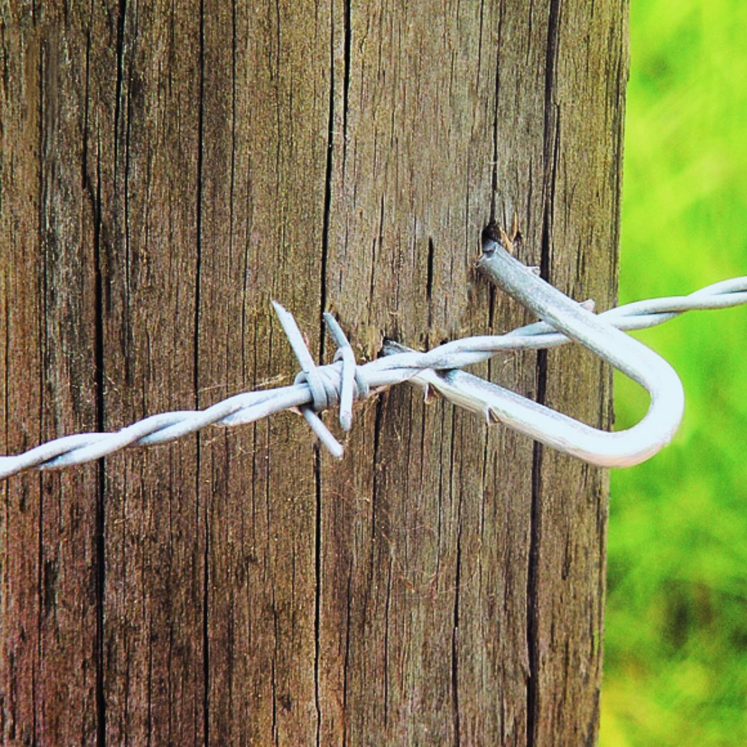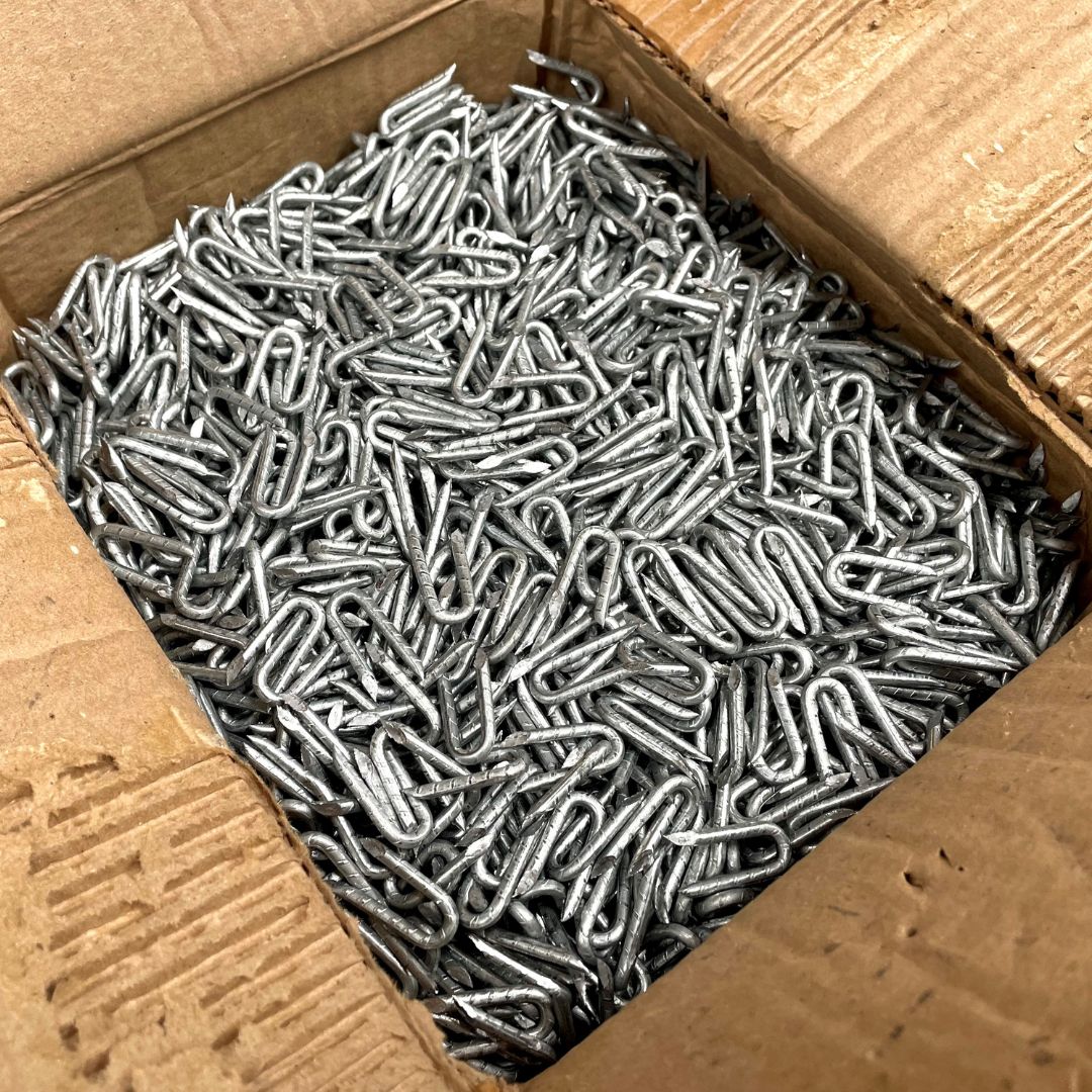 Alambre en forma de U con puntas filosas en ambos extremos, usualmente utilizado para fijar alambres de púas o mallas en cercos perimetrales.